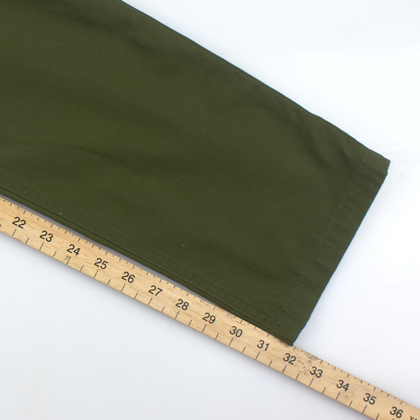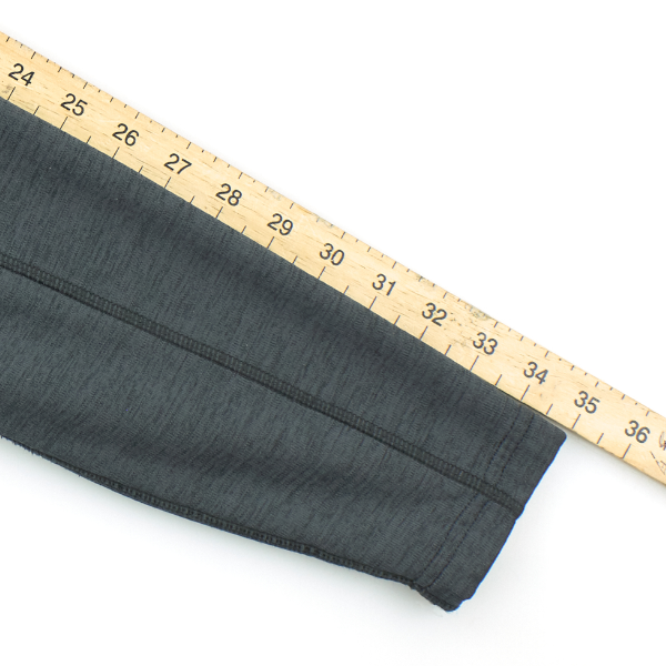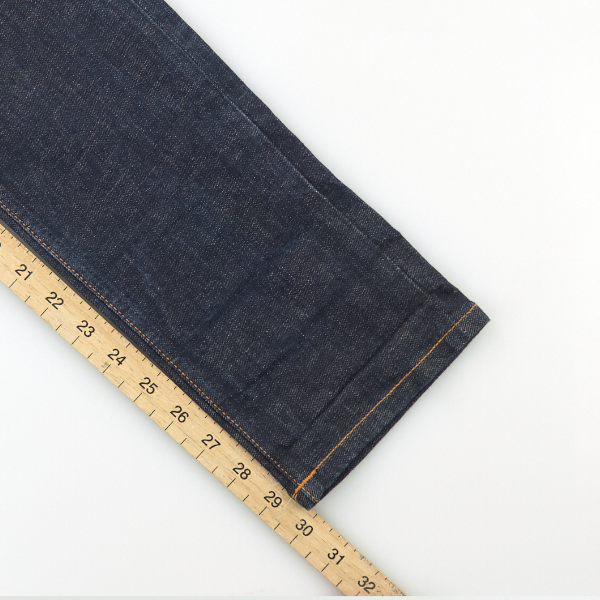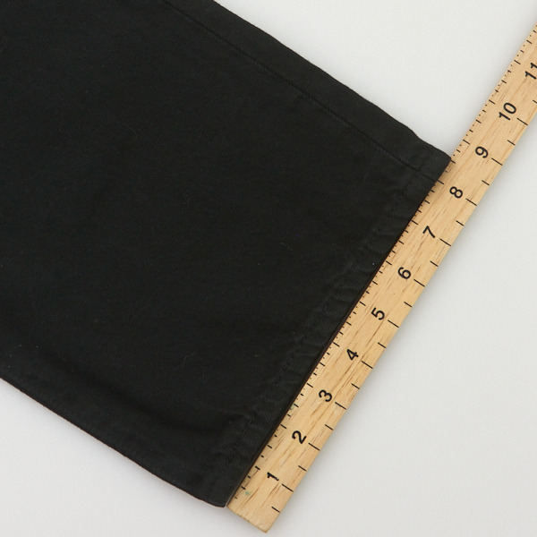 For bottoms, we measure the waist width (this measurement is doubled to give the full waist size), the inside leg, and the hem opening.