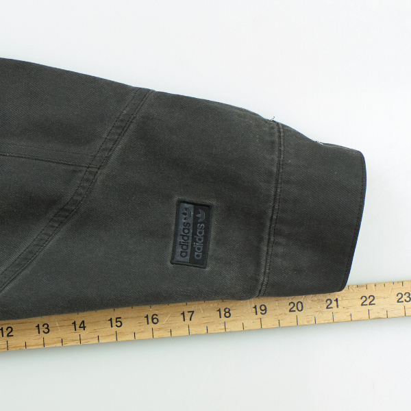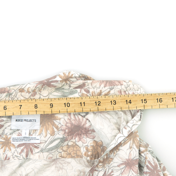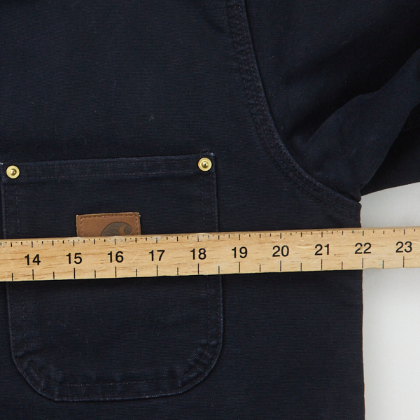 For tops and outerwear, we measure armpit to armpit, armpit to cuff, outside arm length (middle of neck to cuff), and overall length (nape of the neck to the bottom back hem). For Shirts we also measure the collar size.