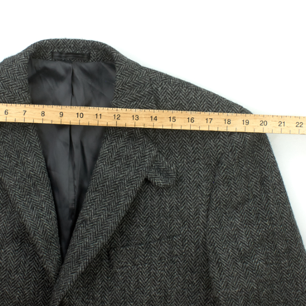 For blazers and suit jackets, measurements include armpit to armpit, armpit to cuff, shoulder to shoulder, shoulder to cuff, and overall length (nape of the neck to the bottom back hem).